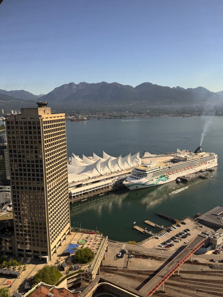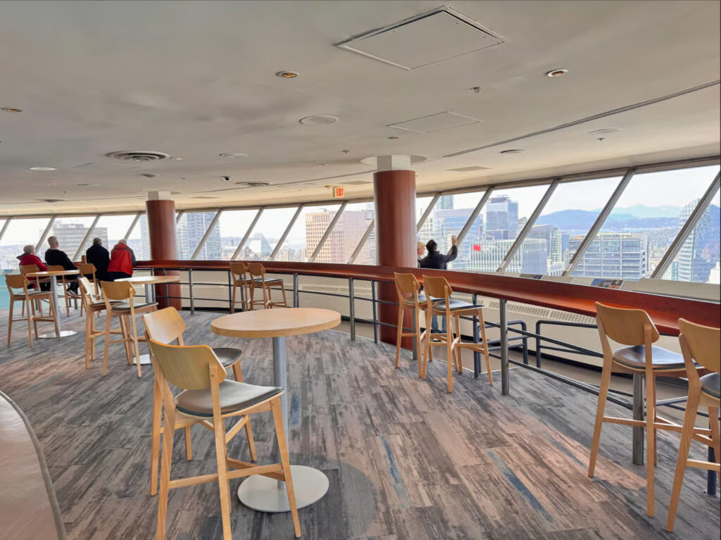 Das Harbour Centre und der Vancouver Lookout gehören zum Stadtbild, sind seit 1977 ein fester Bestandteil der Skyline von Vancouver und das höchste, rein kommerzielle Gebäude in Vancouver. Die ikonische Aussichtsplattform in Form einer ‘fliegenden Untertasse’ ist nachts beleuchtet und verwandelt sich während der Feiertage in einen Weihnachtsbaum, der die Skyline von Vancouver schmückt. Der Komplex ist eines der höchsten Gebäude Vancouvers und beherbergt auf 28 Etagen Büros, den Campus der Simon Fraser University in der Innenstadt, Geschäfte, eine Lebensmittelmesse und das Top of Vancouver Revolving Restaurant. Beginnen Sie Ihren Tag mit uns. Dann kommen Sie zurück und genießen Sie den Sonnenuntergang an der Westküste und die Lichter der Stadt, oder setzen Sie sich einfach hin, entspannen Sie sich und betrachten Sie die atemberaubende Aussicht. The Lookout eröffnet Besuchern und Einheimischen gleichermaßen neue Perspektiven. Die Tageskarten sind den ganzen Tag über gültig! Bitte beachten Sie: Der Vancouver Lookout erlaubt die Verwendung von Dreibeinstativen an Deck nicht.