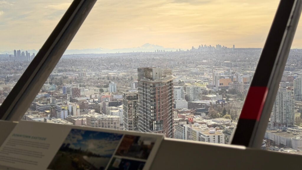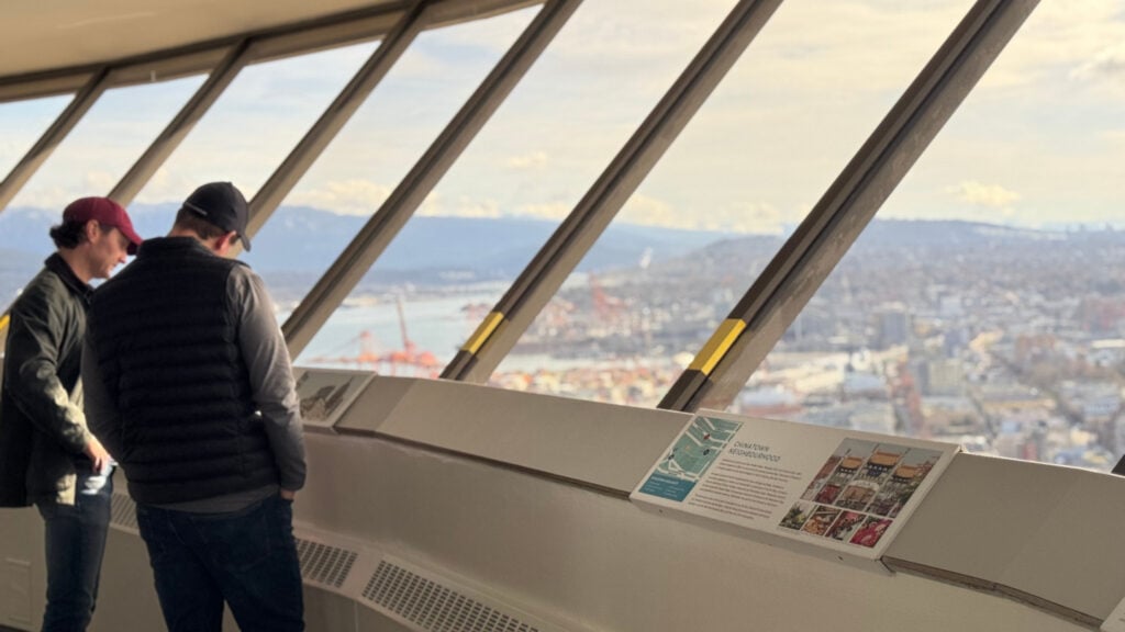 Das Abenteuer beginnt mit einer 40-sekündigen Aufzugsfahrt, die Sie 170 m (553 ft) hoch zu unserer Panorama-Aussichtsplattform bringt. Von dort aus haben Sie einen atemberaubenden 360-Grad-Blick auf die schönsten Sehenswürdigkeiten von Vancouver. Ob am Tag oder in der Nacht, der Vancouver Lookout ist der ideale Aussichtspunkt für das historische Gastown, Coal Harbour, das pulsierende Stadtzentrum und natürlich den weltberühmten Stanley Park.
