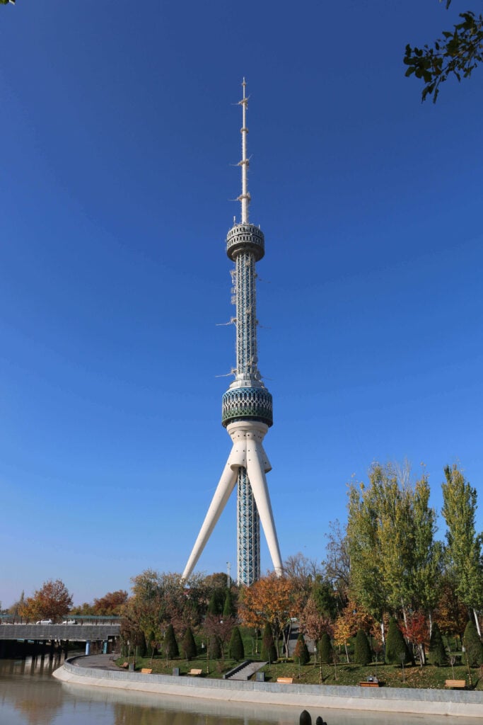 Der Taschkent-Turm ist ein einzigartiges Bauwerk. Er ist 1.200 Fuß (375 Meter) hoch. Er verbindet traditionelle usbekische und moderne Architektur. Der Turm beherbergt die Ausrüstung für Radio, Fernsehen und andere Arten der Kommunikation.