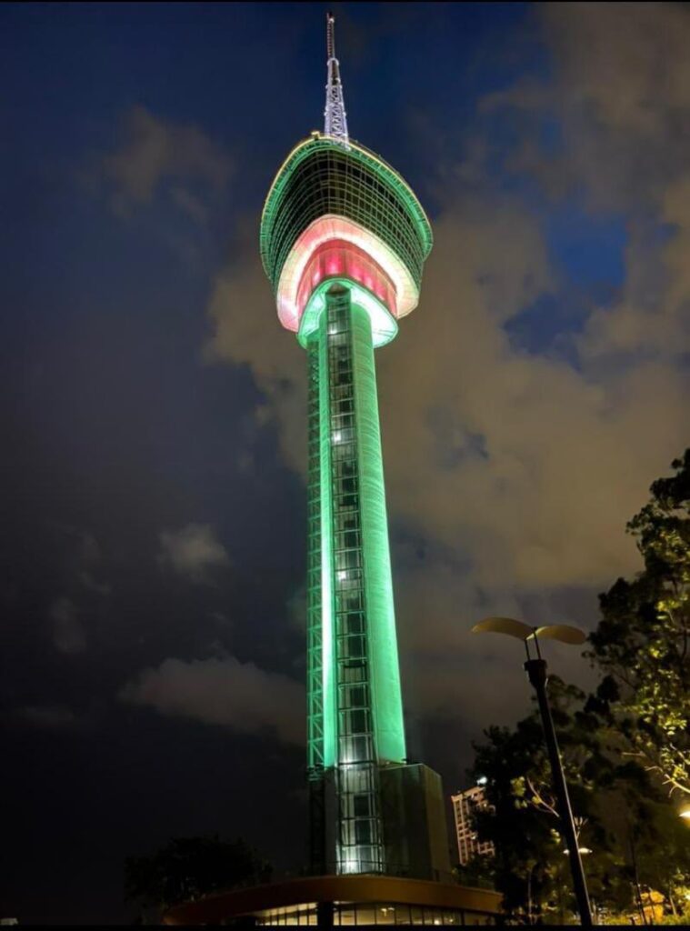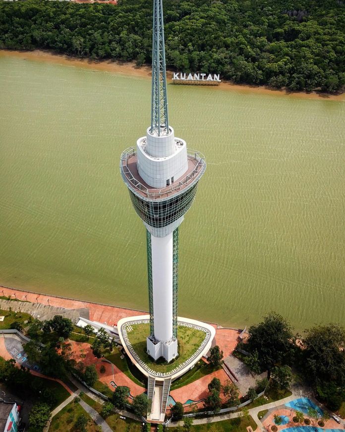Durante el día, la torre es un espectáculo impresionante, mientras que por la noche se ilumina con luces de colores, brillando sobre el paseo marítimo de Kuantan. Los visitantes que suben a los ascensores acristalados del este y el oeste disfrutan de vistas panorámicas de la ciudad de Kuantan antes de llegar al porche de la torre, diseñado para asemejarse a las hojas y flores de la planta Teruntum (Lumnitzera racemosa), antaño abundante a lo largo del río Kuantan.
