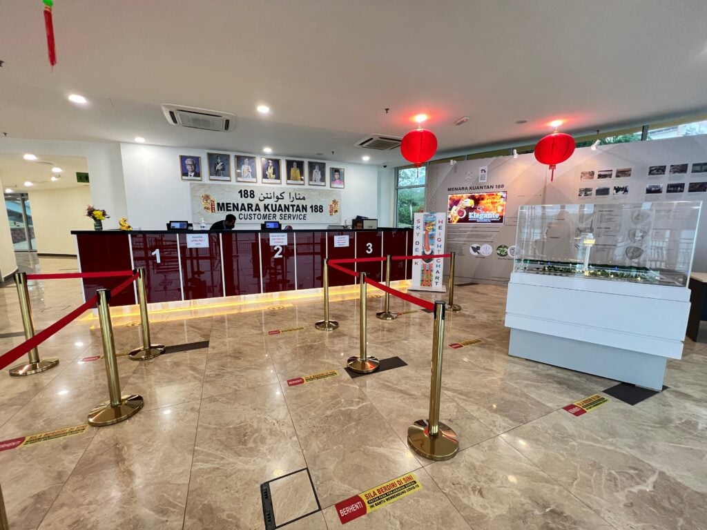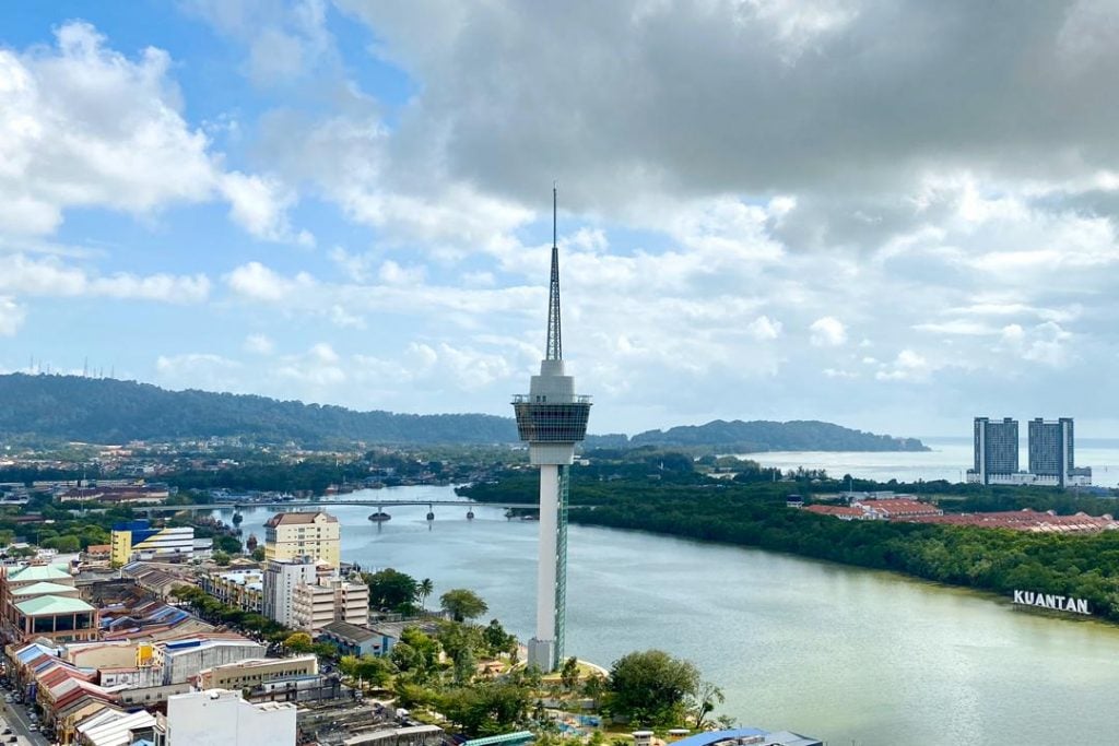 La ubicación de la torre también es estratégica, ya que está rodeada de lugares de interés a los que se puede llegar andando, como la calle Kuantan Art Street, Taman Kerang, las hileras de tiendas antiguas de Jalan Besar y el paseo marítimo de Kuantan, con su gigantesco letrero “KUANTAN”, blanco durante el día y resplandeciente de color por la noche.