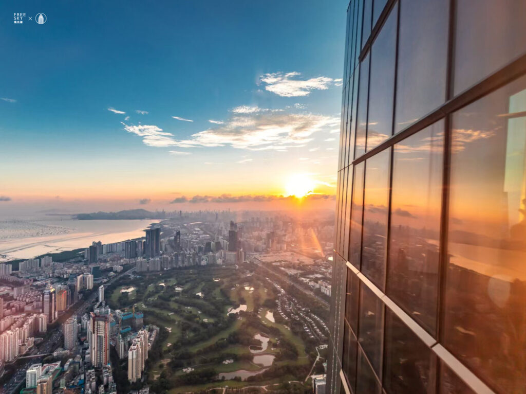 Como atracción principal del nuevo edificio emblemático de Shenzhen, Free Sky no es sólo una nueva atracción turística de la ciudad, sino que también tiene su valor para la cultura, la creatividad y la educación científica. Complementado por una red de transporte bien conectada y una amplia variedad de actividades turísticas, Free Sky se ha convertido en un lugar de visita obligada para los turistas de Shenzhen. Free Sky también cuenta con los ascensores de aceleración más rápidos del país, con una velocidad de 10 m/s, que alcanzan la planta 116 en sólo 55 segundos aproximadamente. Free Sky deleita a los visitantes con múltiples espacios funcionales, como las zonas de observación con suelo de cristal, las zonas de experiencias interactivas, las zonas de exhibición, el túnel espacial, el laberinto de espejos, la ciudad inteligente, la interacción con la sombra humana, el telescopio del futuro, el viaje entre el tiempo y el espacio en un espacio cerrado, liderando el futuro con tecnología punta. Es el lugar ideal para contemplar el florecimiento de Shenzhen con una experiencia inigualable de 360 grados.