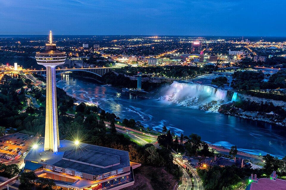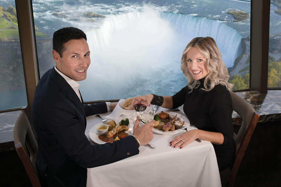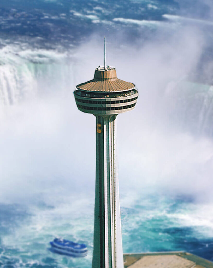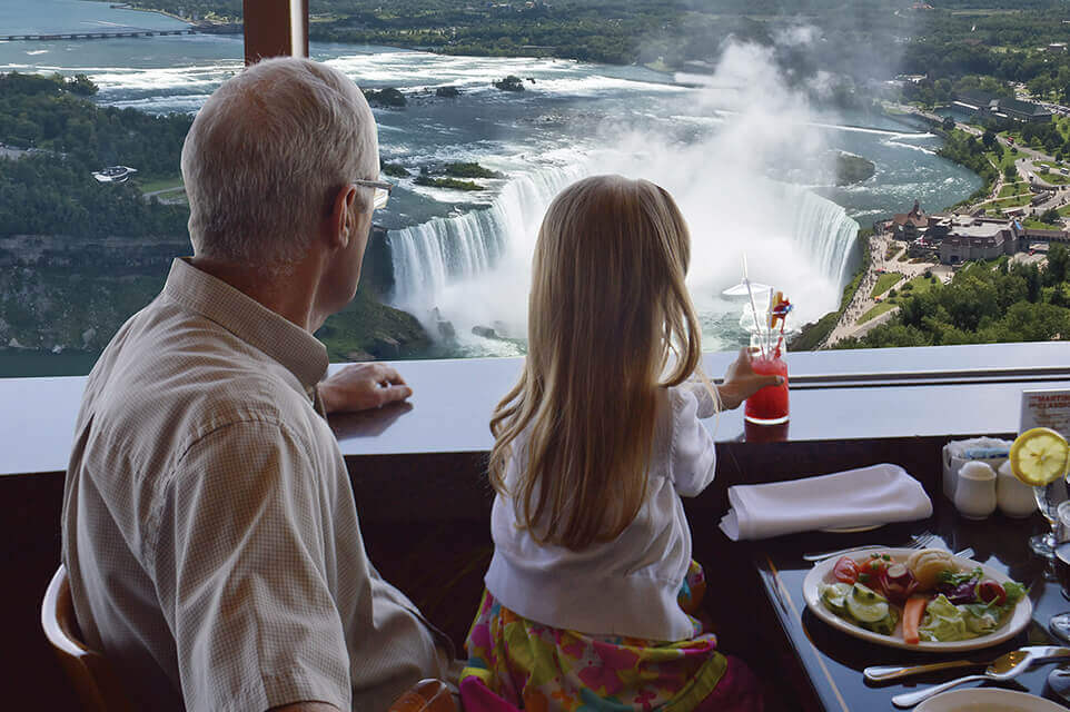 La Torre Skylon ofrece a los visitantes una vista panorámica de las cataratas Horseshoe y American desde nuestro amplio observatorio interior/exterior, a 236 metros por encima de las cataratas.