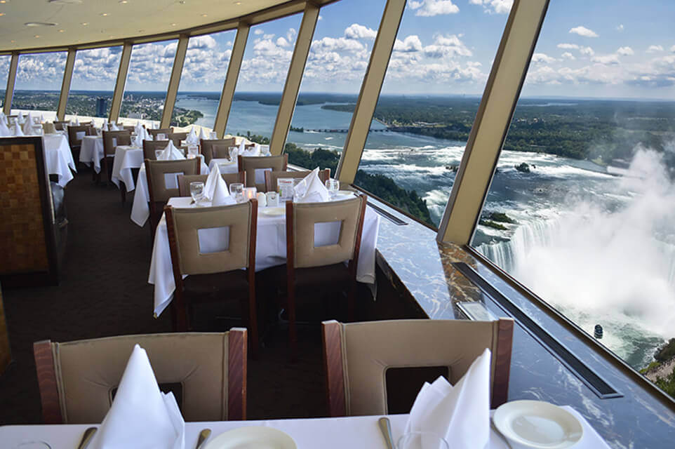 Contamos con 2 restaurantes en lo alto de nuestro emblemático edificio: el legendario Revolving Dining Room y el informal, pero distintivo Summit Suite Buffet. Como único restaurante giratorio de la ciudad, nuestro Revolving Dining Room gira 360º cada hora, ofreciendo unas vistas impresionantes. Nuestro restaurante Summit Suite Buffet, abierto en temporada para almuerzos y cenas, es famoso por el Brunch de los domingos.