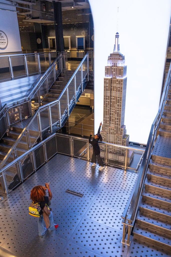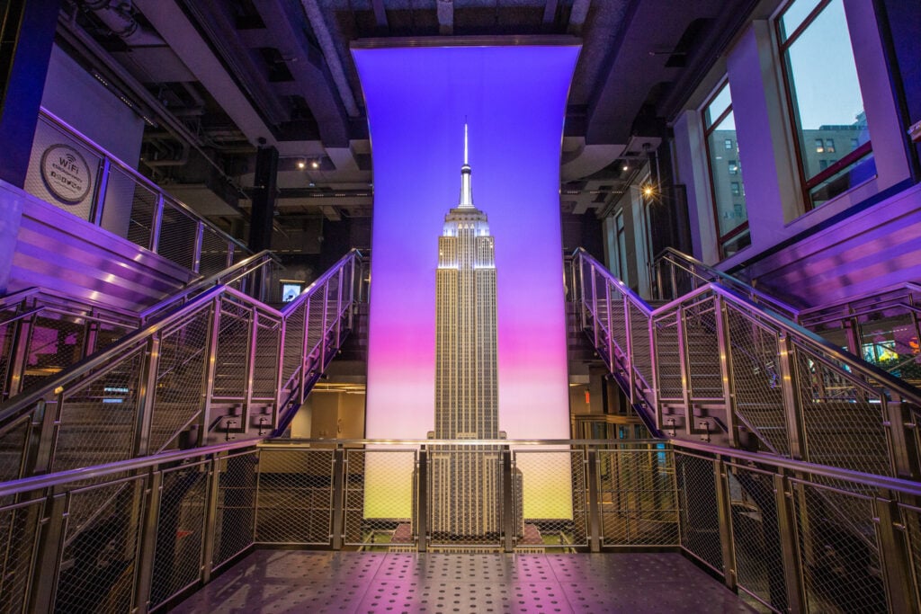 Elevando-se 1.454 pés acima do centro de Manhattan, da base à antena, o Empire State Building é conhecido em todo o mundo como o edifício mais famoso do mundo. Nos últimos 3 anos, os Observatórios passaram por uma intensa transformação que culminou numa nova e excitante experiência para desfrutar com a família e os amigos! Comece a sua viagem no nosso novíssimo átrio de entrada na 34th Street, que apresenta uma grande escadaria com um modelo arquitetónico de dois andares do edifício, um novo espaço para a cerimónia de iluminação com uma apresentação que mostra os visitantes famosos do passado, uma passadeira vermelha para os convidados VIP Express e sinalização multilingue e quiosques de venda de bilhetes disponíveis em nove línguas diferentes.