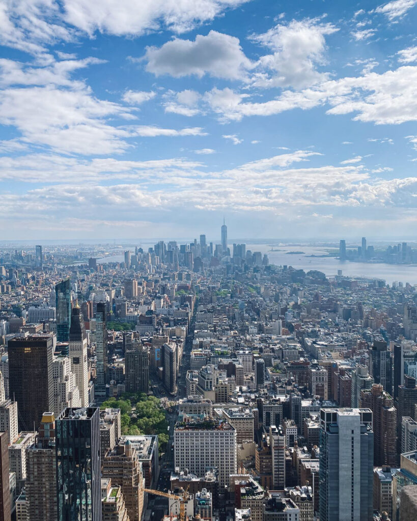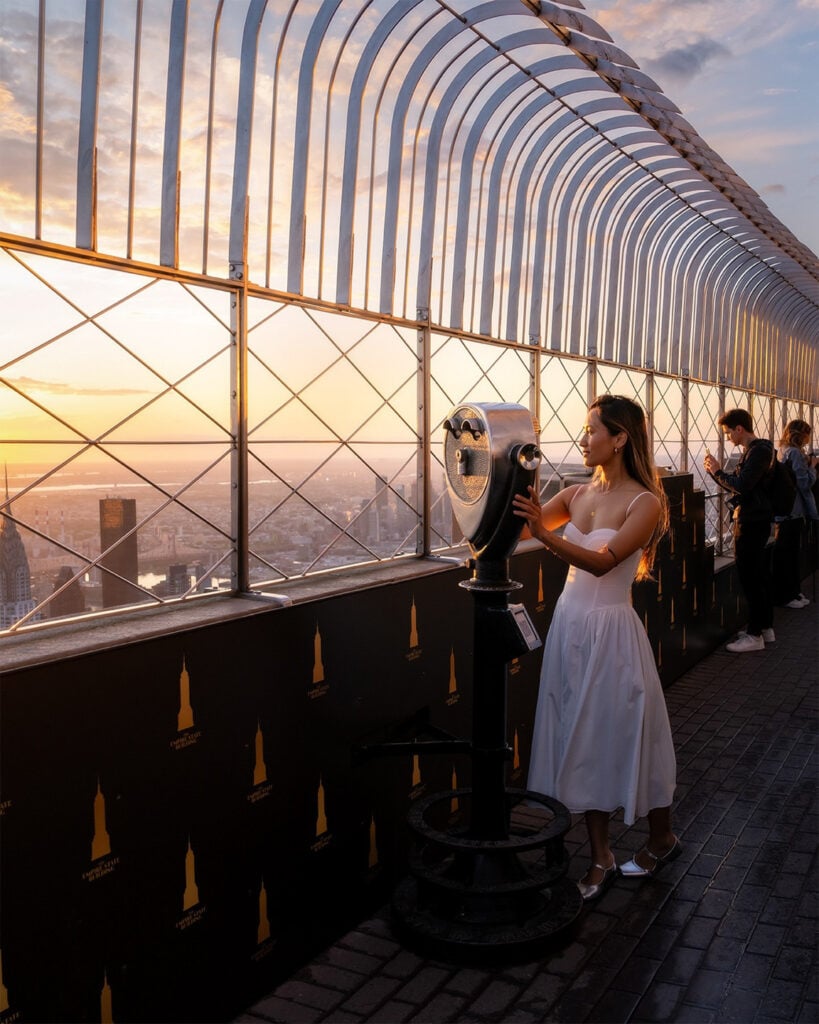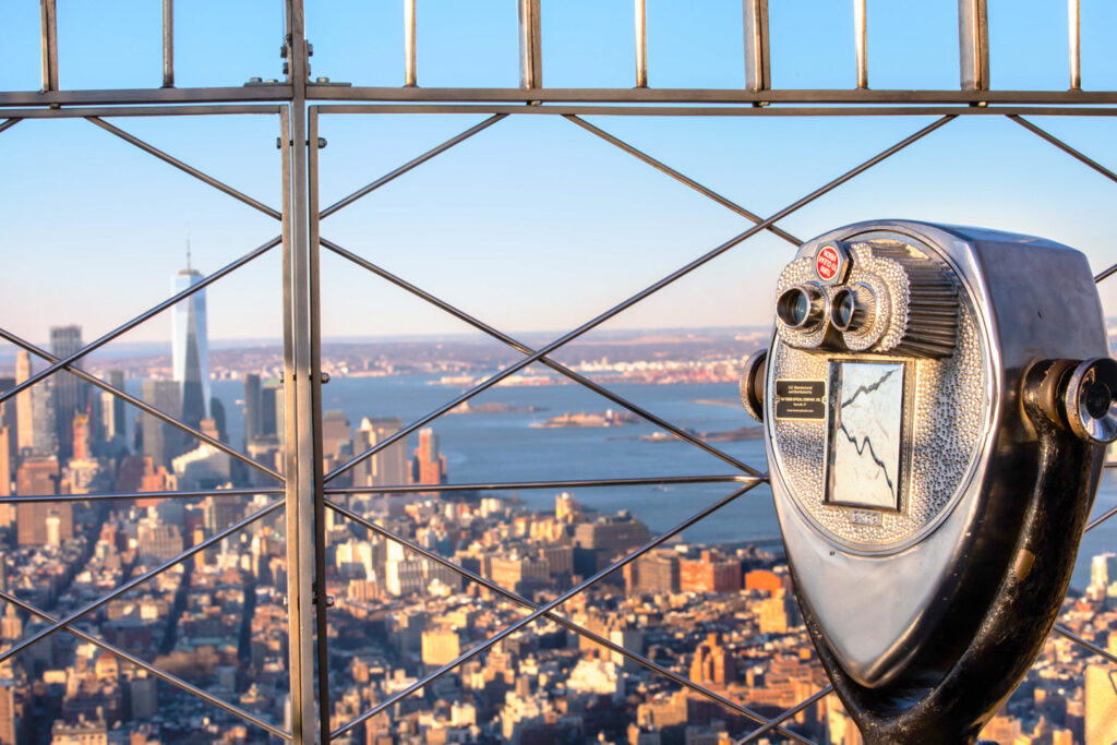 Elevando-se 1.454 pés acima do centro de Manhattan, da base à antena, o Empire State Building é o edifício mais famoso do mundo. O nosso 86º Observation Deck, aberto diariamente das 8h às 2h, oferece o ponto de observação ao ar livre de 360 graus mais alto da cidade de Nova Iorque. Num dia claro, é possível ver até seis estados - Nova Iorque, Nova Jérsia, Pensilvânia, Connecticut, Massachusetts e Delaware. Explore a entrada do Observatório, recentemente concebida, que inclui uma grande escadaria com um modelo arquitetónico de dois andares do edifício, sinalização multilingue e quiosques de bilhetes em nove línguas, um novo espaço de cerimónia de iluminação com imagens de visitantes famosos do passado e uma passadeira vermelha para convidados VIP express.