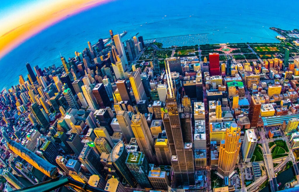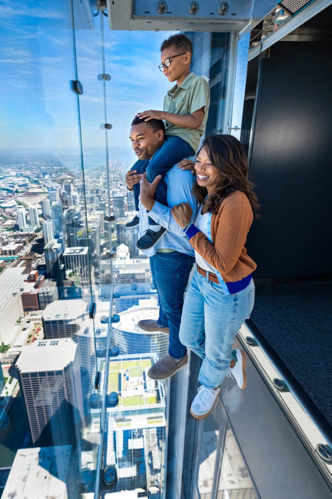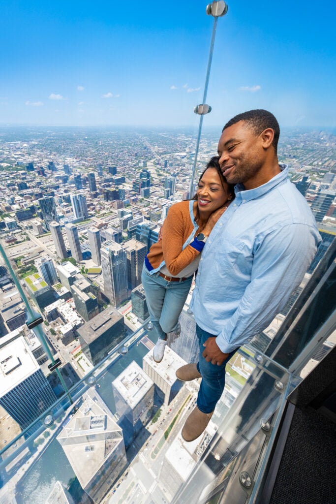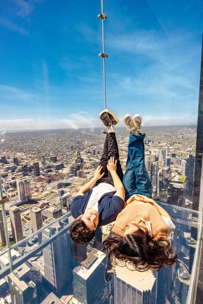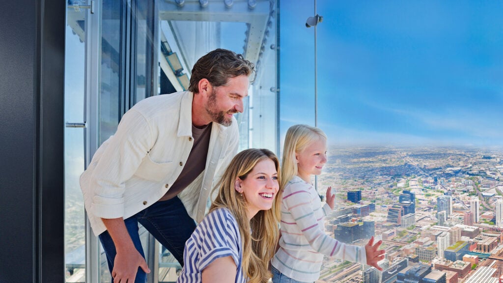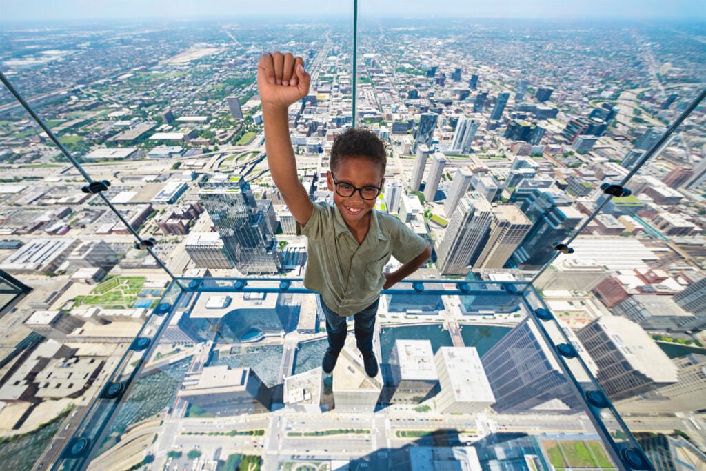 Nenhuma viagem a Chicago está completa sem uma visita ao The Ledge no Skydeck Chicago! Desfrute de vistas de 360 graus que abrangem até 50 milhas e 4 estados e a nossa vista mais espetacular - 1.353 pés diretamente para baixo. O Skydeck atrai mais de 1,7 milhões de visitantes de todo o mundo. The Ledge - varandas de vidro que se estendem 4,3 pés para fora do edifício proporcionam uma experiência emocionante, uma vez na vida, com outra vista inesquecível sobre a Wacker Drive e o rio Chicago.