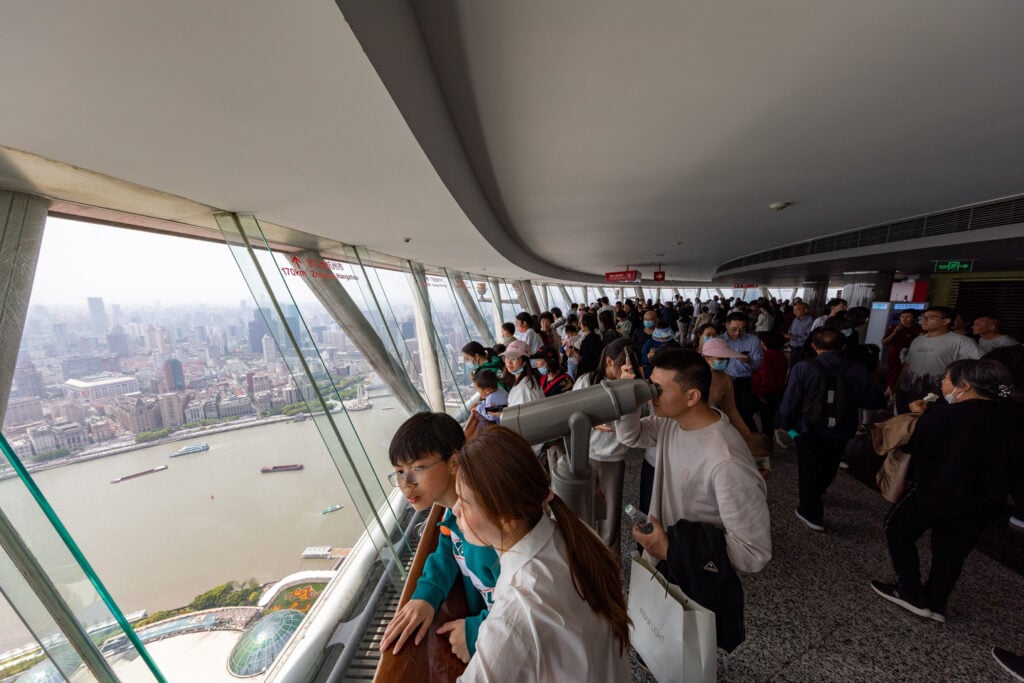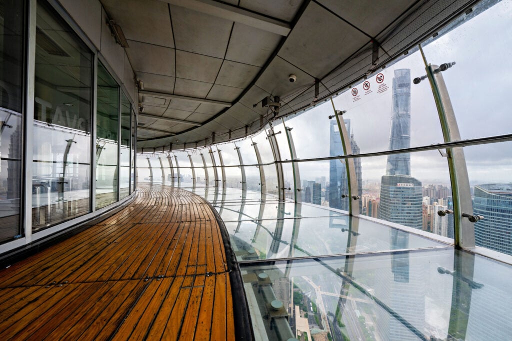 高 263 米的观光廊是上层空间的主要观光层。向下俯瞰,游客可以看到代表老上海历史的外滩、陆家嘴金融区以及见证新上海奇迹的美丽黄浦江。高 259 米的上球体透明观光厅是世界上独一无二的 360 度透明观光走廊。在这里,游客可以随意走动,体验漫步云端的感觉。在这里,你可以想象到踏上繁华的陆家嘴的情景。.