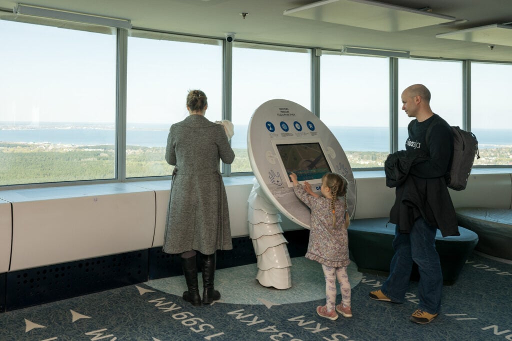 游客在塔上的旅程首先是观看有关塔的 3D 动感电影,了解塔本身的历史和爱沙尼亚恢复独立的历史,然后再登上 170 米高的观景平台和餐厅。在塔顶,您可以欣赏爱沙尼亚人历代最伟大成就的互动展览。一个特殊的全景节目可以放大视野,并简要介绍塔林有趣的景点和地区。游客可以在塔上的电视演播室录制并播放视频问候,还可以获得特别纪念品来纪念这次参观。.