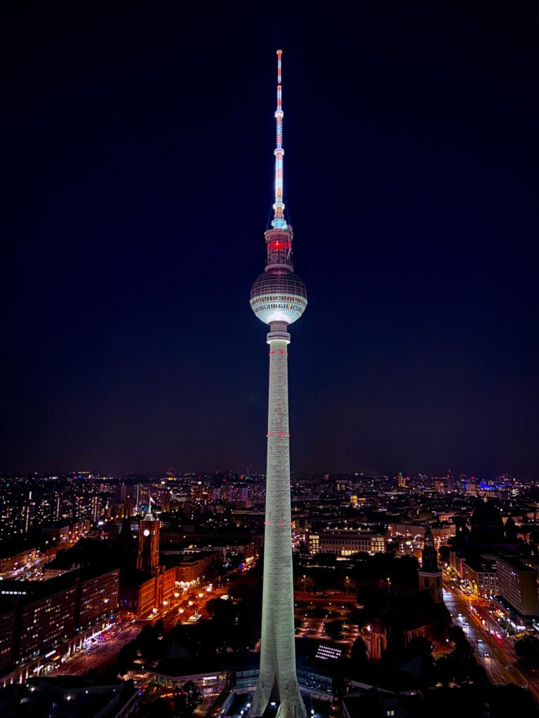 柏林电视塔是德国最高的建筑。在这座城市中,没有任何其他地方能让您欣赏到首都地标性建筑的如此美景。乘坐电梯到达 203 米高的观景台只需 40 秒钟,登上观景台后,您可以在柏林最高的酒吧边喝酒边欣赏 360° 全景。旋转餐厅 “Sphere ”提供柏林最高的观光之旅。它的菜单是一次穿越时空的美食之旅,带领客人回顾过去 50 年电视塔成为德国首都真正标志性建筑的历程。.